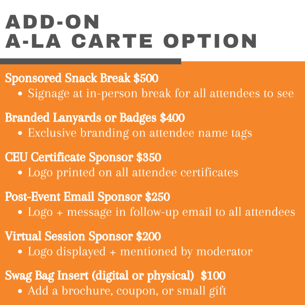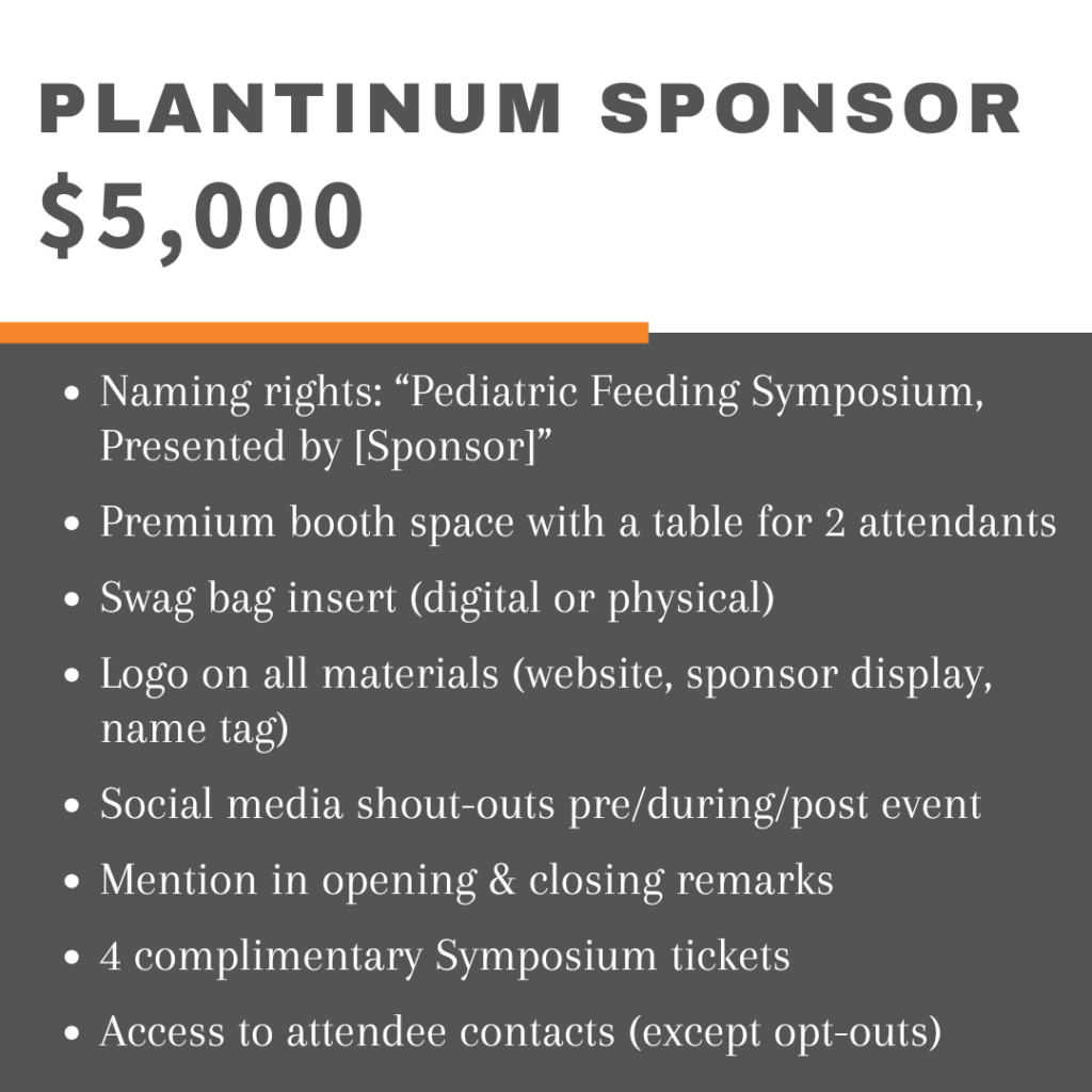 By sponsoring the Pediatric Feeding Symposium, you are directly supporting professional education, community connection, and high-quality pediatric feeding care.